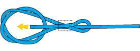 First, slide a round-section sleeve over the line, make an overhand knot and tuck the end through at least one more time. The number of times you'll be able to do this will depend on the size of the loop and the diameter of the line. You'll know you've gone one too far when the loop starts to deform |