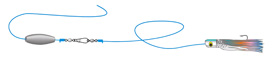 Use a monofilament leader of 150lb to 300lb breaking strain, crimp on a single or double hook (I've used a double here), slide on an egg shaped lead (sized to fit securely inside the nose of the lure) - and that's it.