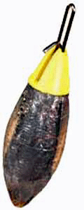Impact Leads... These are the impact leads described above, for use with a link clip. These have the bait clip built-in alongside the attachment eye, as shown. In strong tides you may have to go for the piked version to keep the rig anchored where you want it. |