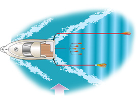 - you can deploy your lures at different distances from your transom