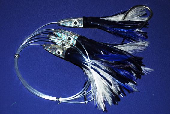 Items No.: Feather Chain-04 Head Color: Silver, Blue, Purple, Green Any colors available Feather Color: Purple/Black, Mexican Flag, Dorado, Blue/White Any colors available Line: 200lb Mono Leader Feather Lure Size: 6" 6.5" Package: 12" × 12" Nice Lure Bag Hook: 8/0 9/0 or 10/0 Mustad Trolling Hook Feather Daisy Chain come with 4 teaser feathers and 1 stinger feather, the stinger with Mustad trolling hook(or SS hook) or with a Ball bearing swivel snap, stinger color same as teaser or different as teaser color. Change the stinger very easy.
